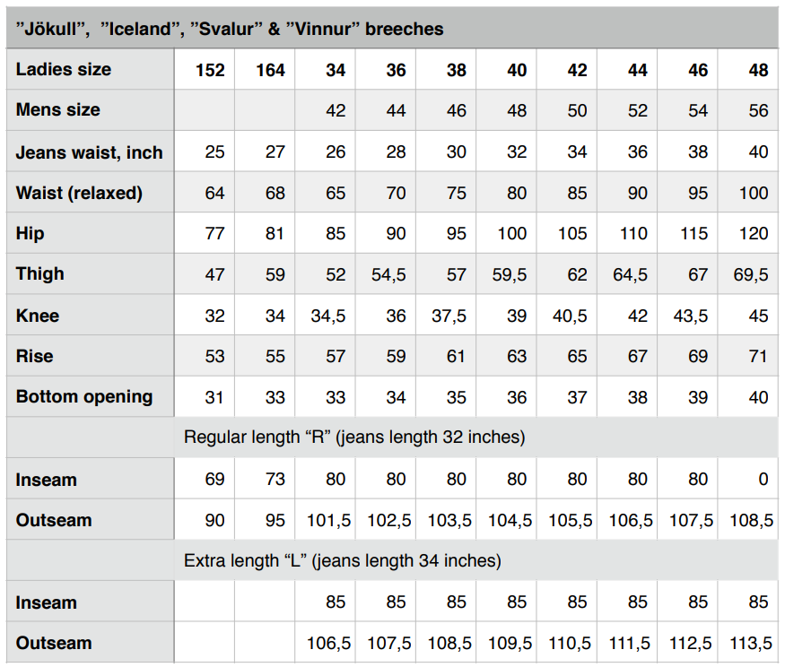 The pants are available in two leg lengths : Regular(R) or Long (L)